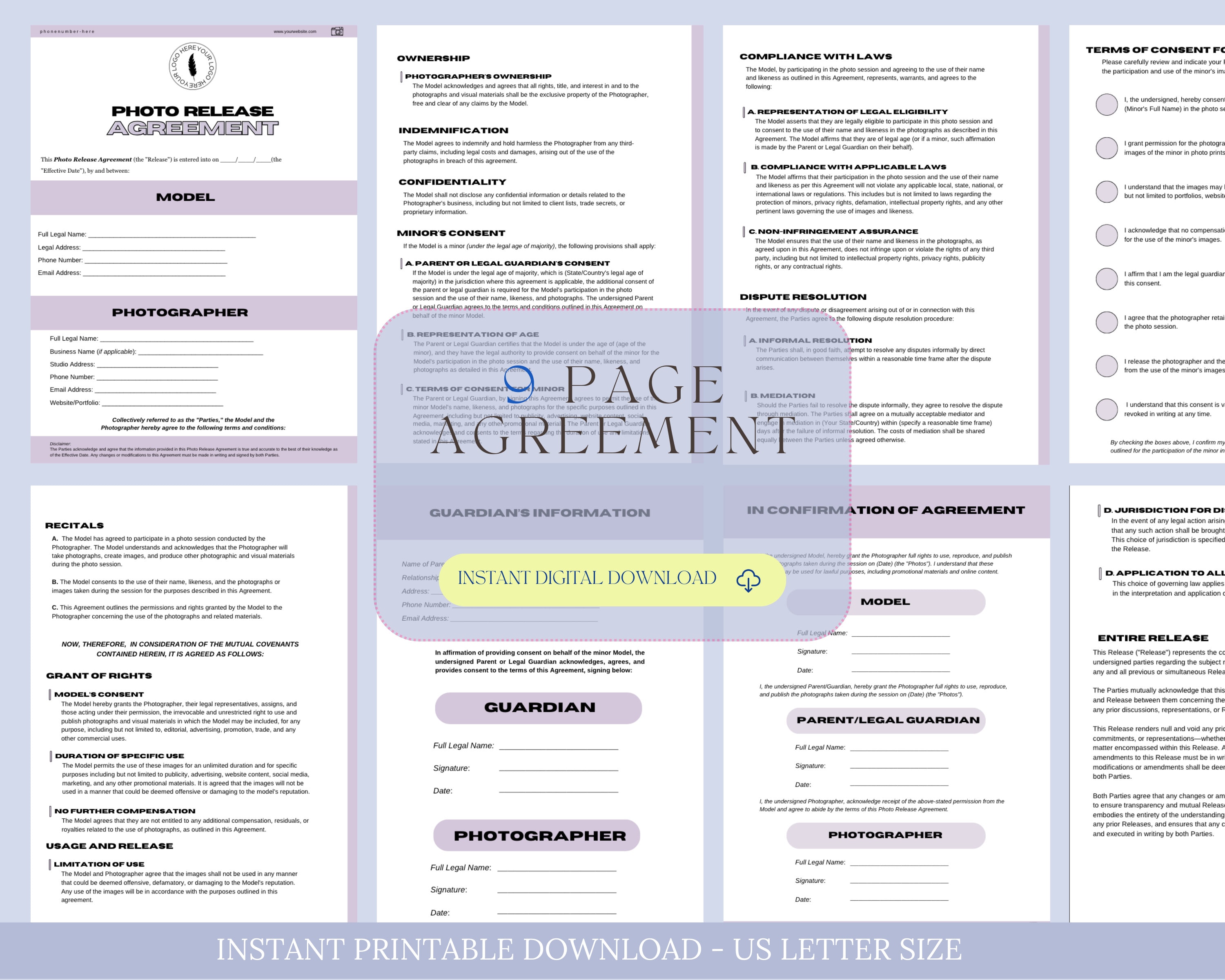 Photo Print Release Template Agreement Printable Photography Print
