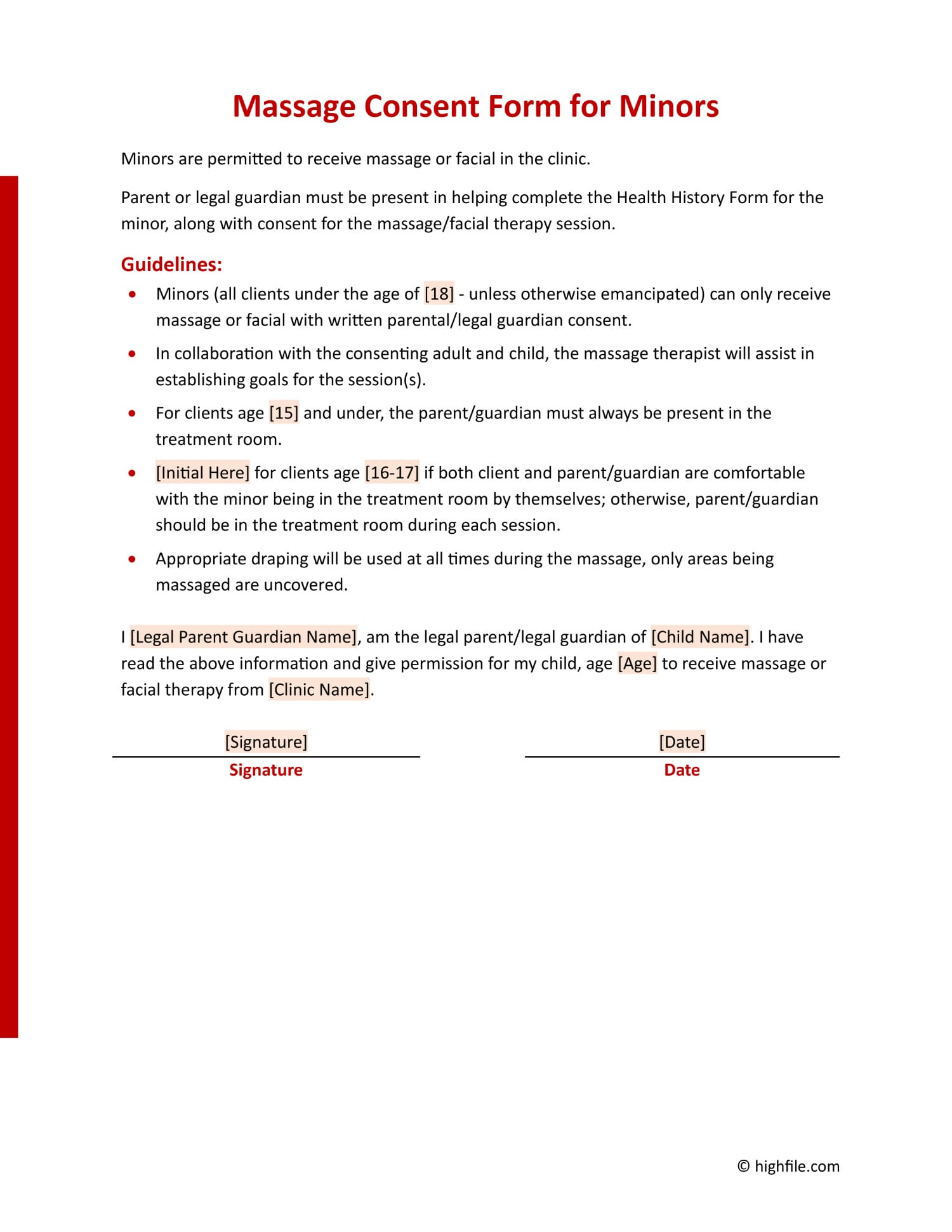 Photo Release Form for Minors Word PDF Google Docs Highfile