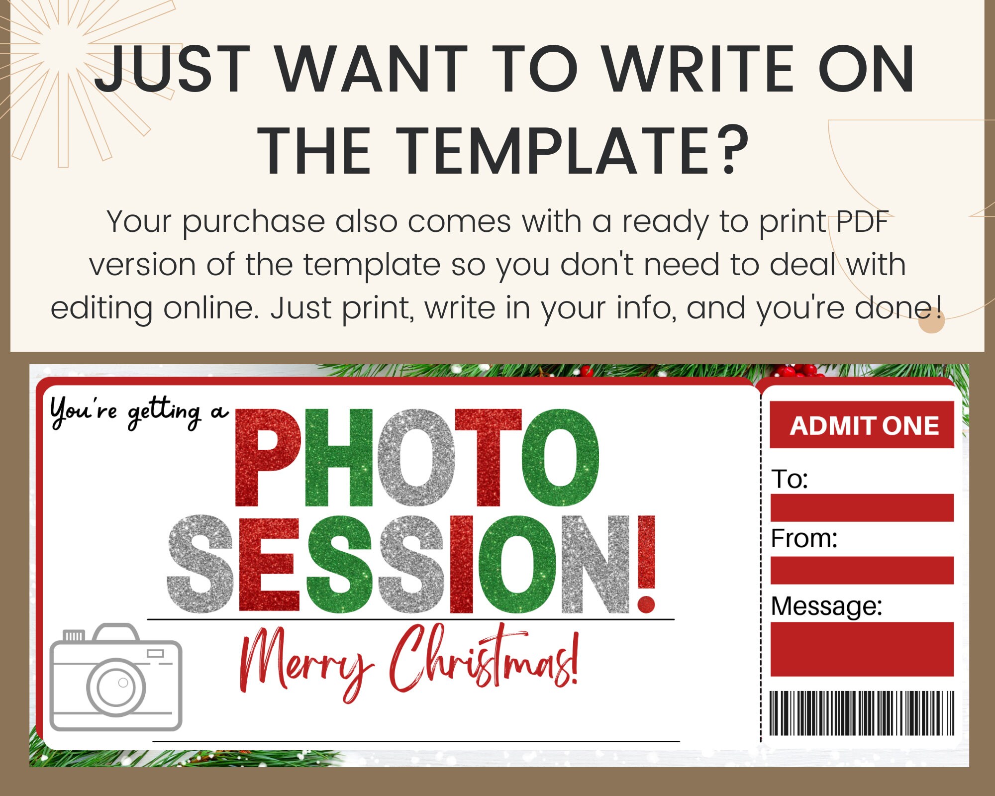 Christmas Photo Session Gift Certificate Template Printable