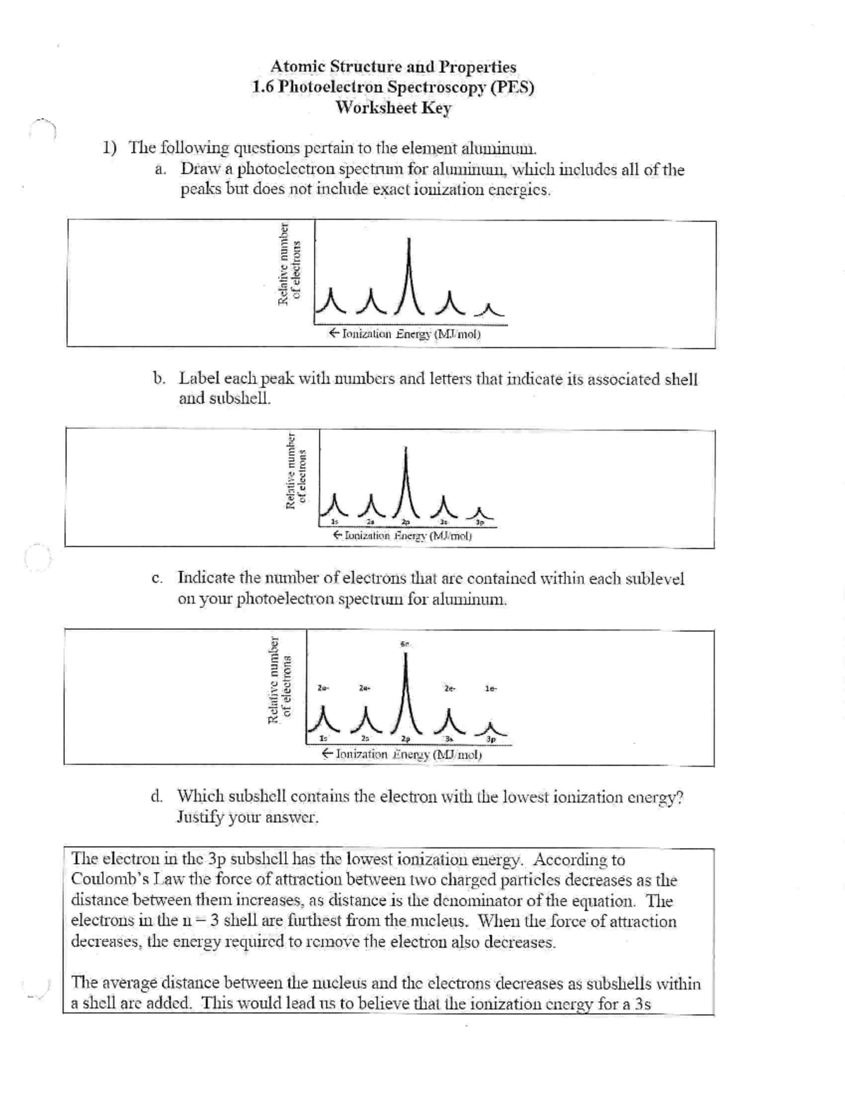 1 6 Photoelectron Spectroscopy (PES) Worksheet Answer Key Studocu