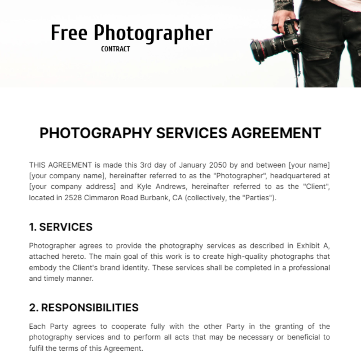 Free Photographer Contract Template prntbl concejomunicipaldechinu gov co