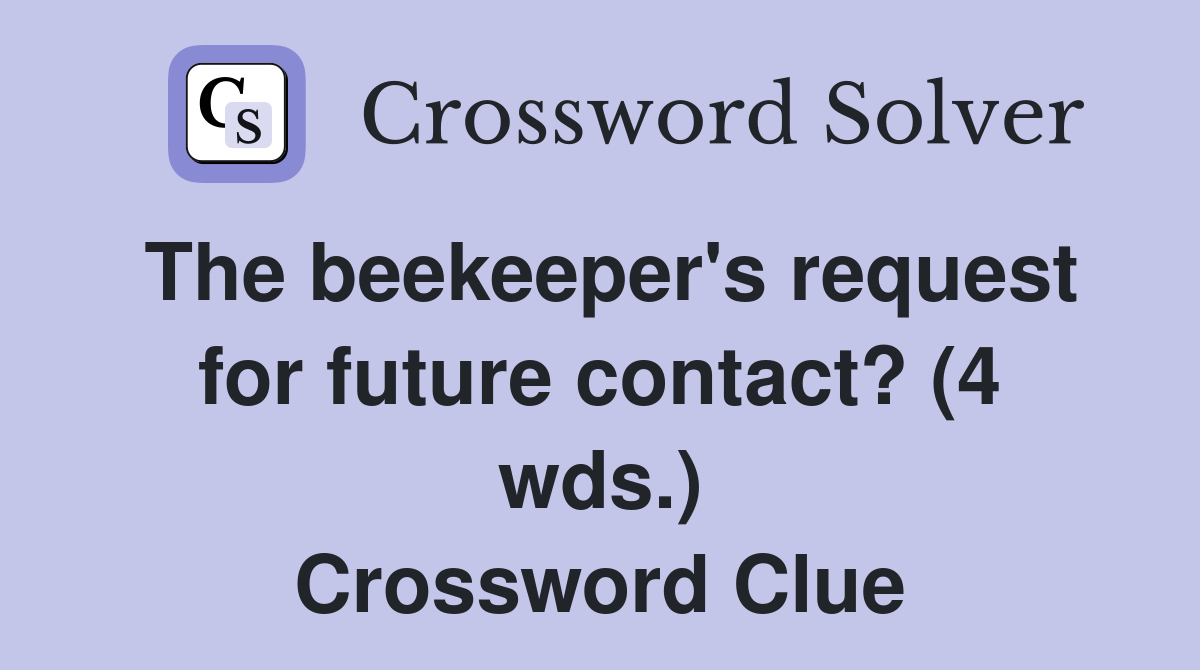 The beekeeper s request for future contact? (4 wds ) Crossword Clue