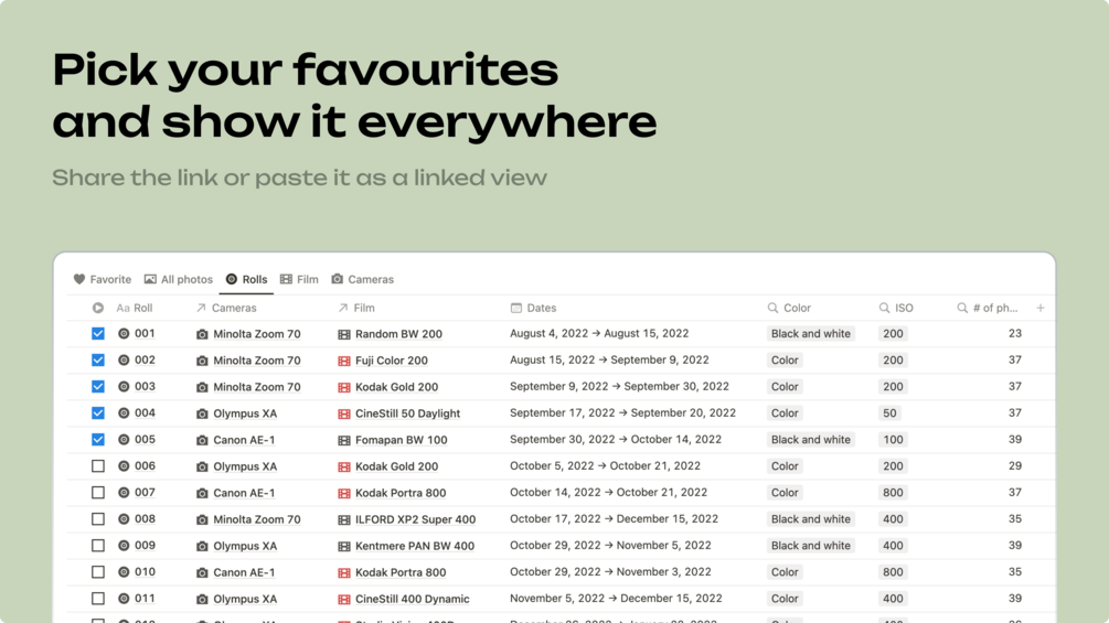 Film Photography Notion Template 2024 Digital Film Inventory Etsy