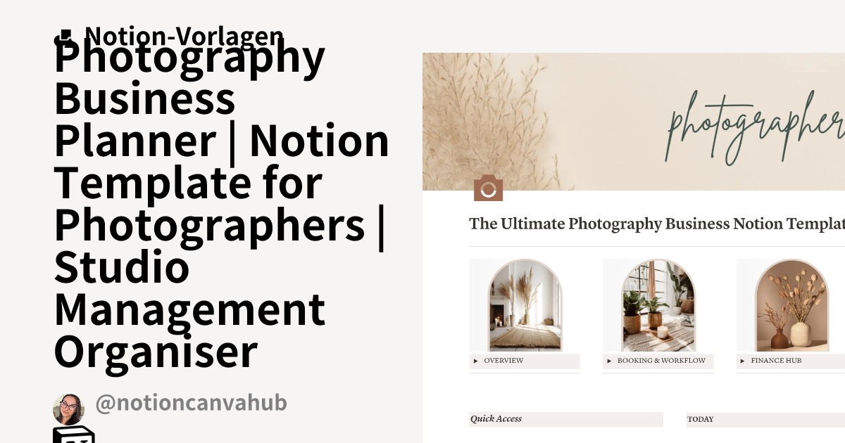 Photography NOTION Template Notion HUB Template Notion Workflow