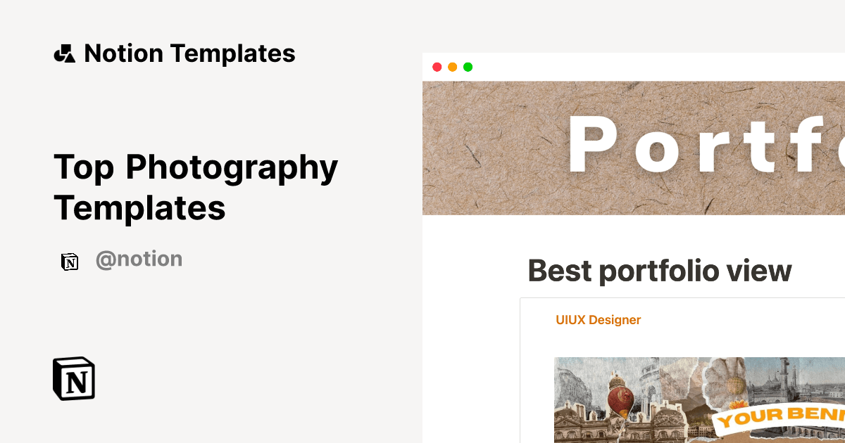 Top 10 Photography Portfolio Templates Thị trường mẫu Notion