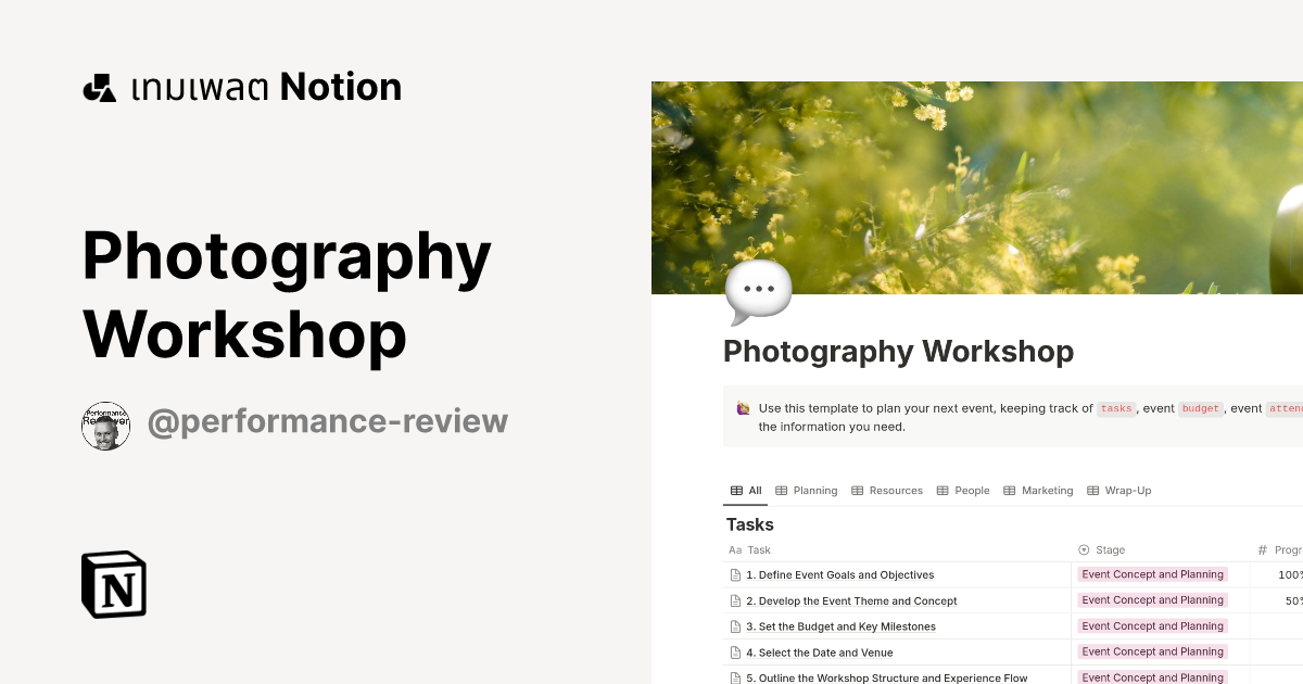 เทมเพลต Photography Workshop มาร์เก็ตเพลส Notion