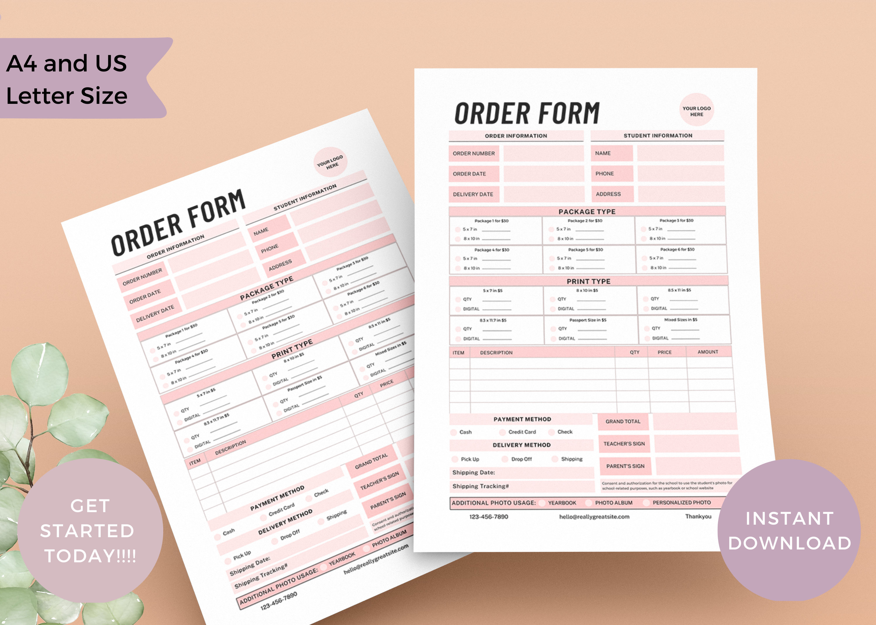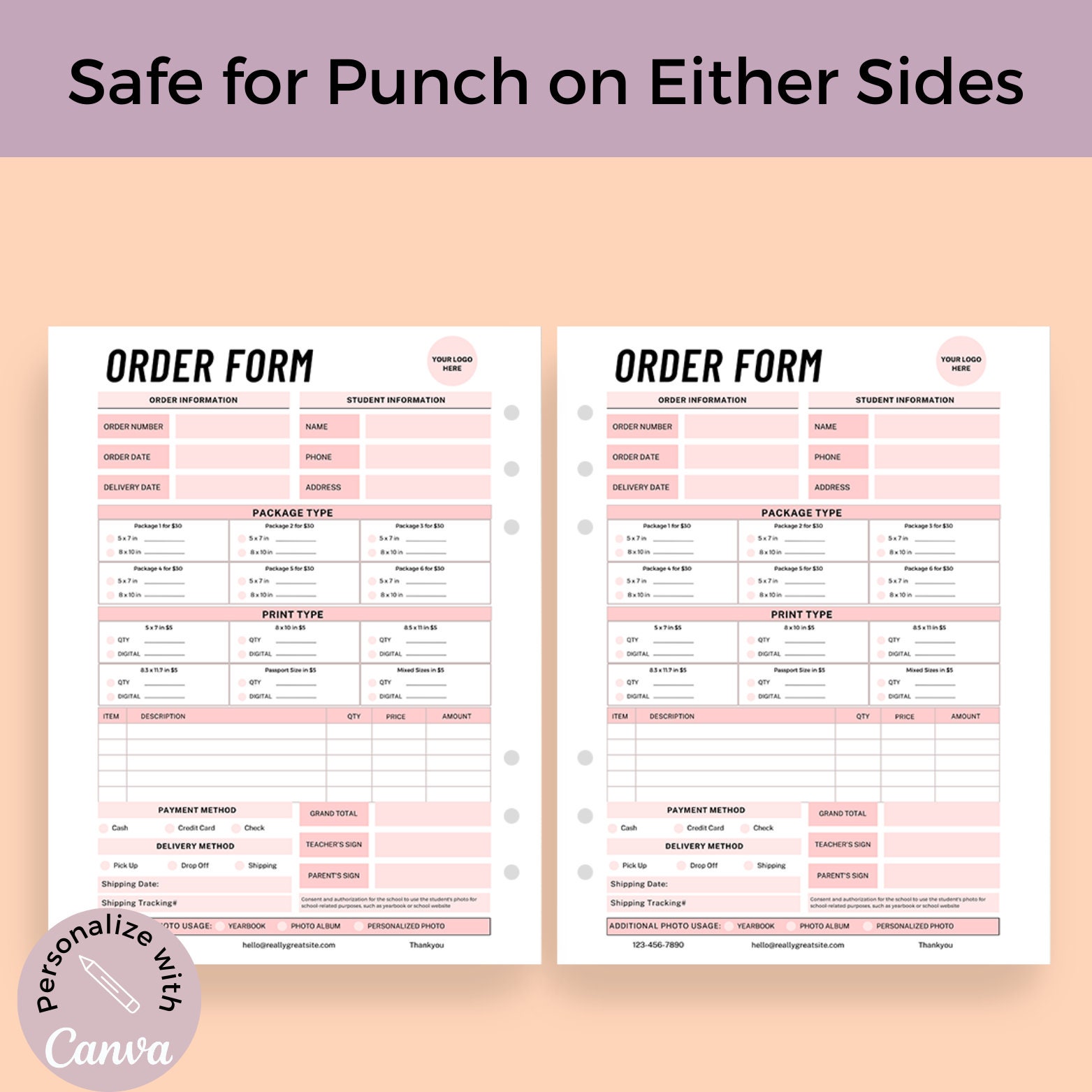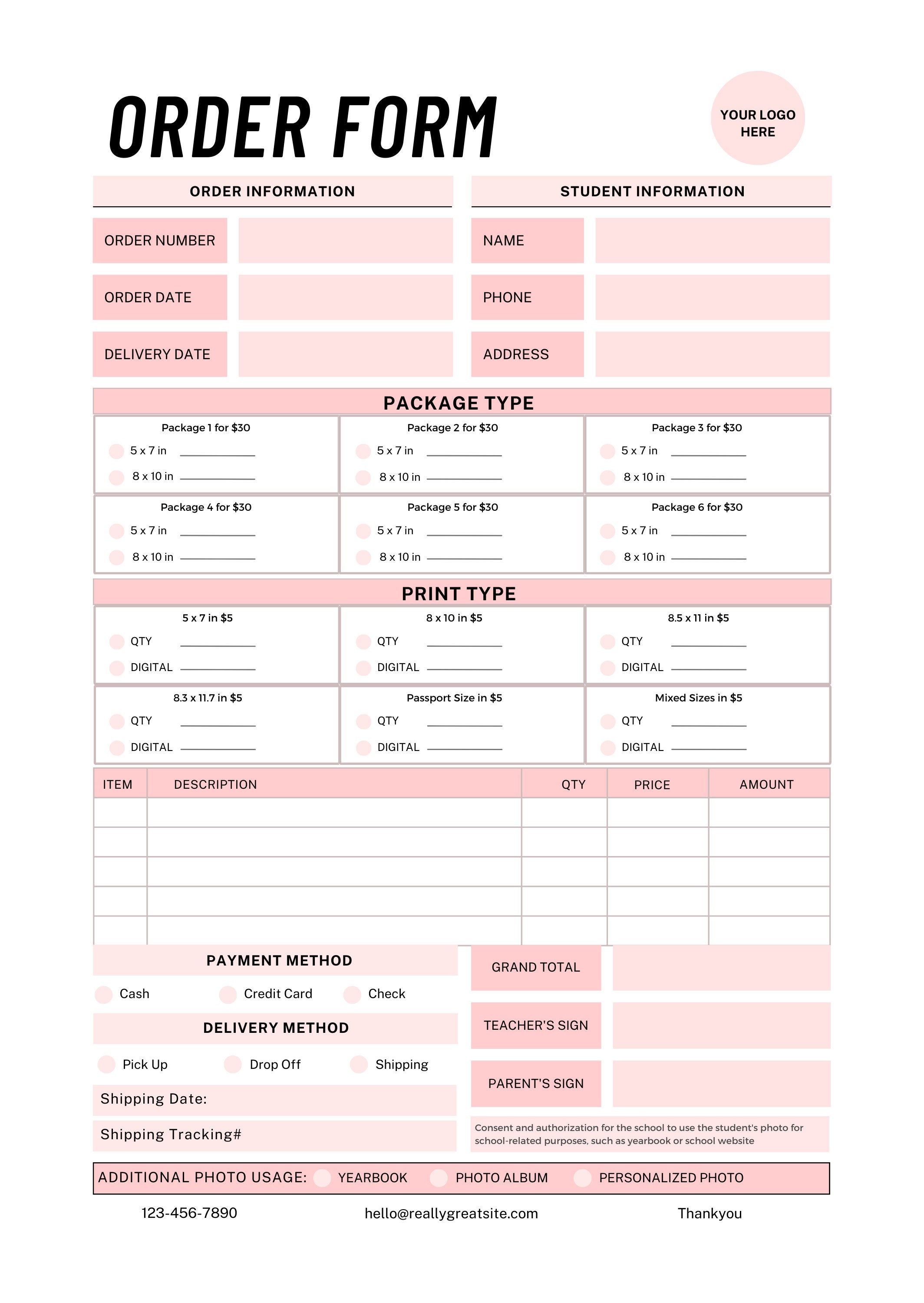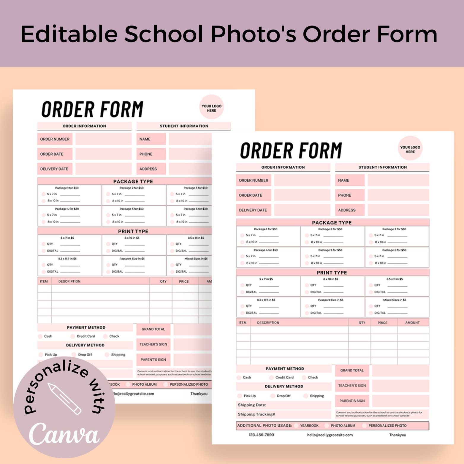 SCHOOL PHOTOGRAPHY Order Form Template Preschool Photos Etsy