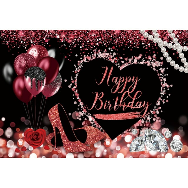 Happy Birthday Flower Wall Photography Backdrop Customized Glitter Pink