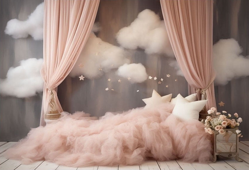 Photography Background Dreamy Clouds Pink Curtain Child Birthday Party