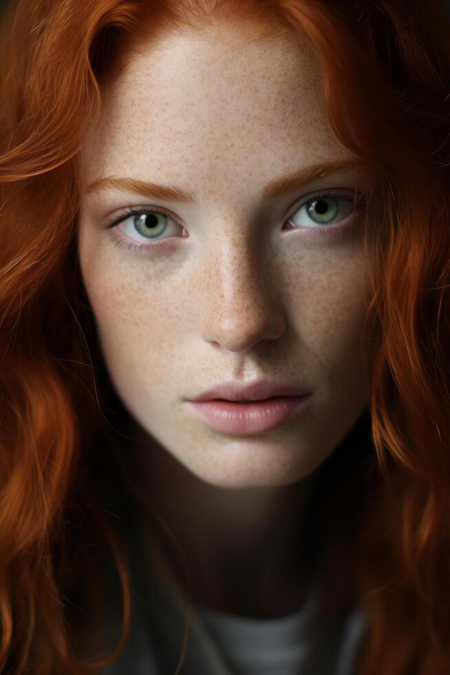 a woman with red hair and freckles generative ai 32109981 Stock Photo