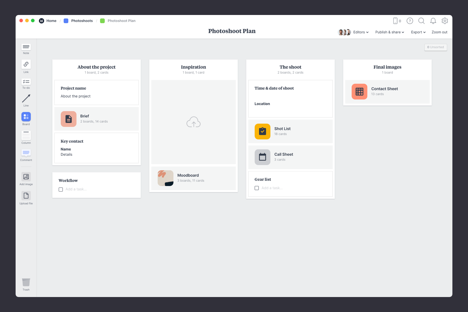 Nine free templates for planning and organizing a photoshoot Milanote
