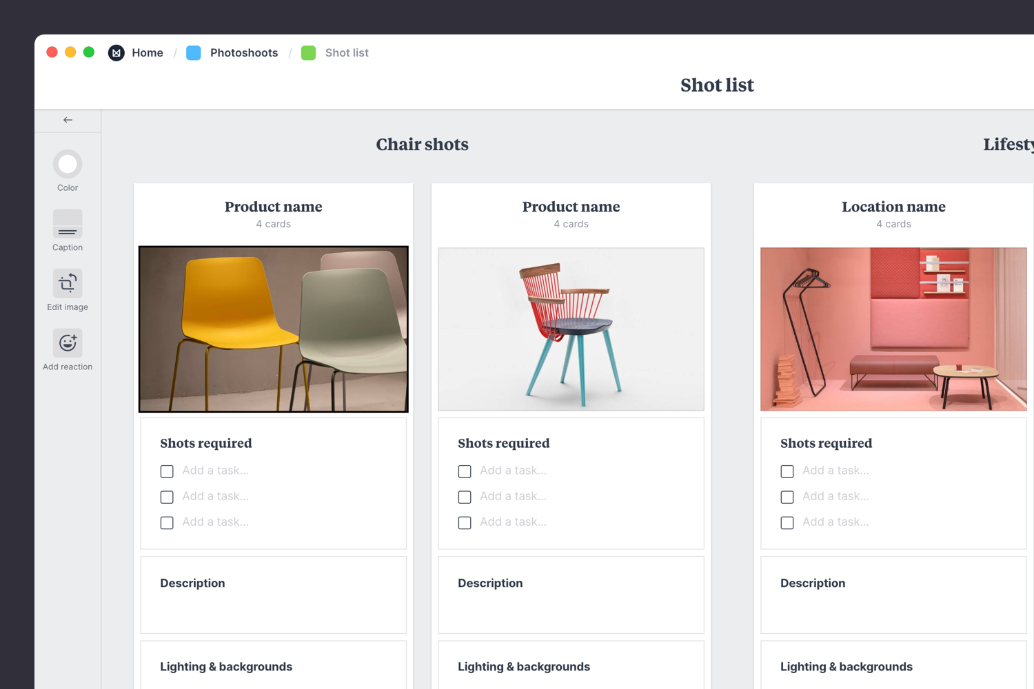 Nine free templates for planning and organizing a photoshoot Milanote