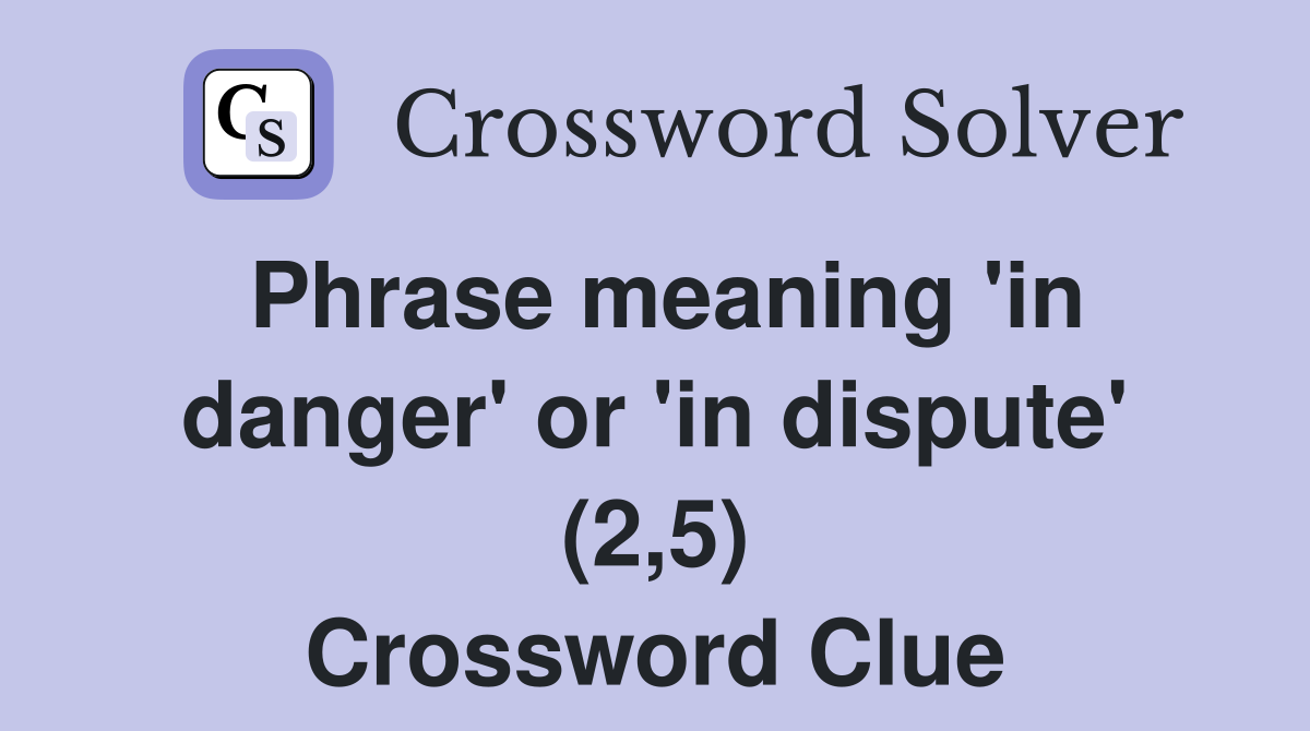 Phrase meaning #39 in danger #39 or #39 in dispute #39 (2 5) Crossword Clue