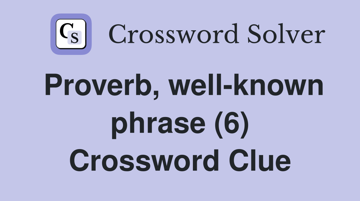 Proverb well known phrase (6) Crossword Clue Answers Crossword Solver