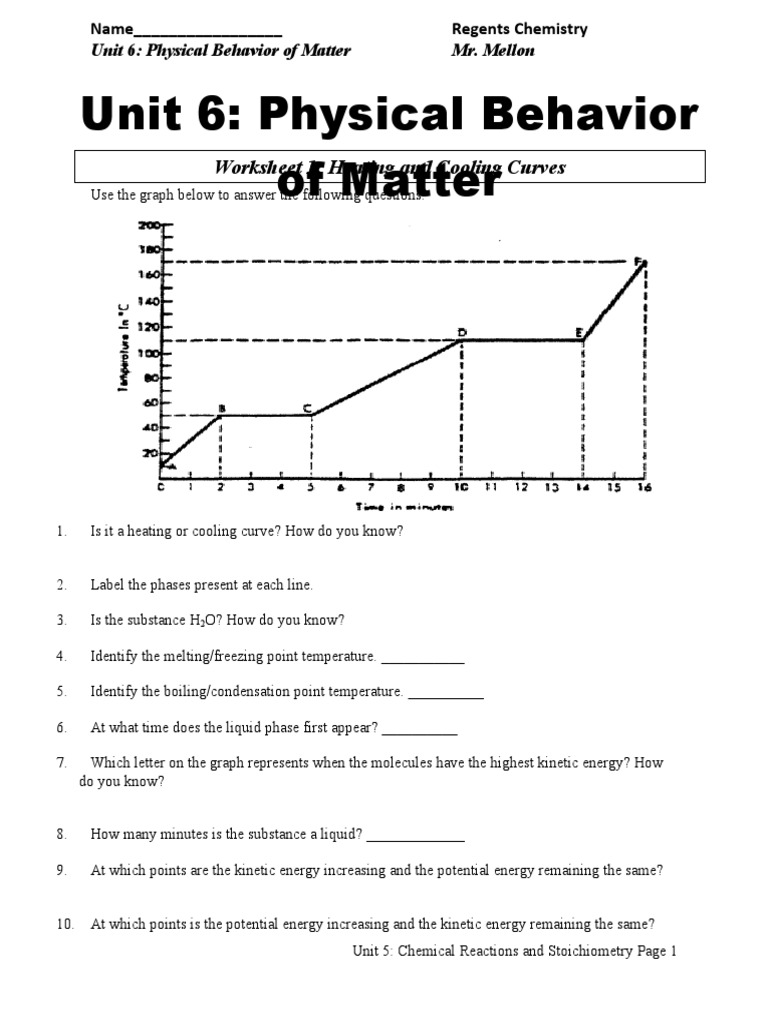 Physical Behavior Of Matter Heating And Cooling Curves Worksheet Answers