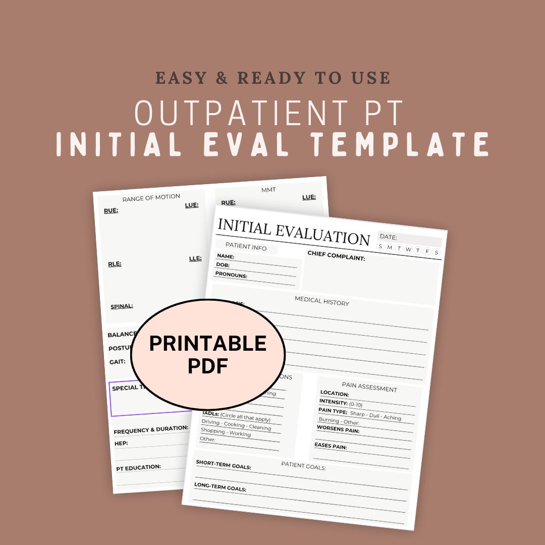 Outpatient Physical Therapy Initial Evaluation Template Etsy
