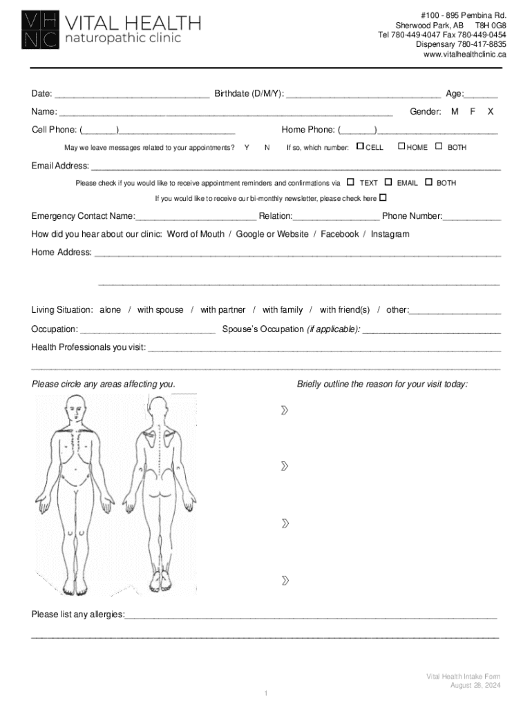 Fillable Online Vital Health Intake Form 2024 Naturopathic Care