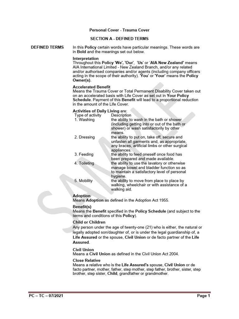 Aia Real Trauma Cover Policy Wordings PDF