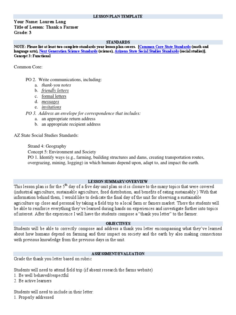 Lesson Plan Template Thank A Farmer PDF Intensive Farming