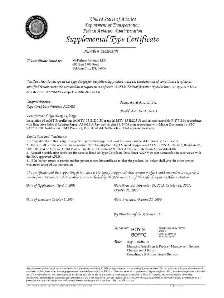 Fillable Online Supplemental Type Certificate Use Authorizations Fax