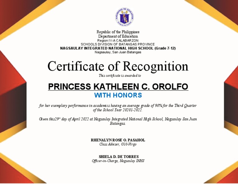 CERTIFICATE Template WITH HONORS PDF