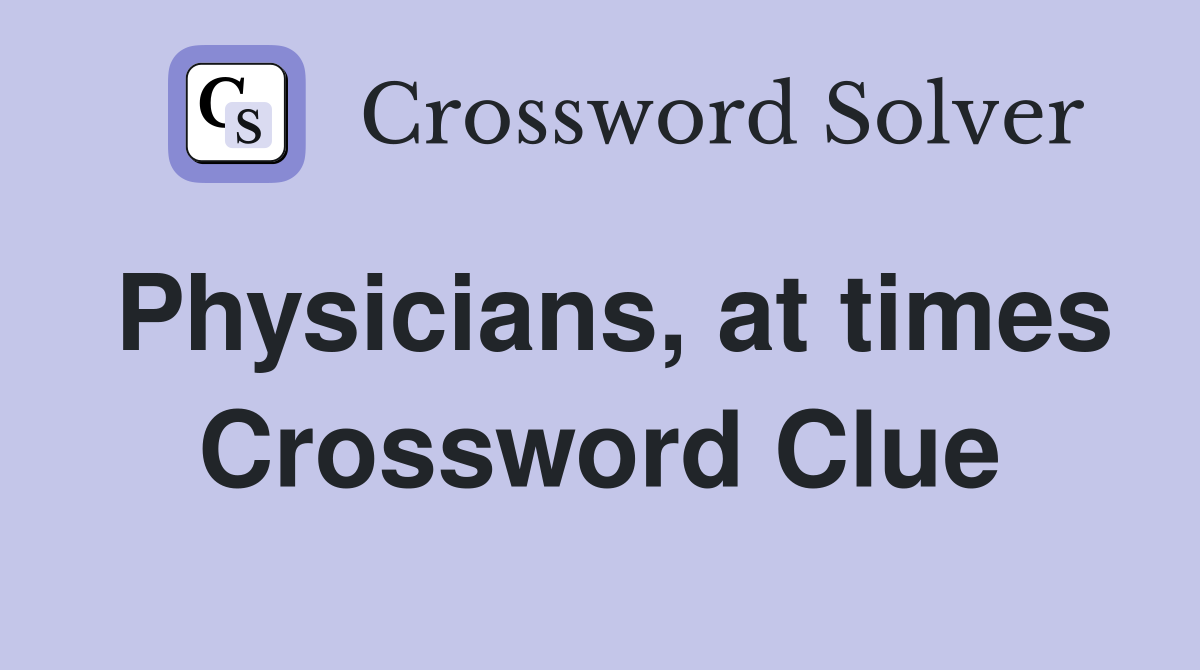 Physicians at times Crossword Clue Answers Crossword Solver