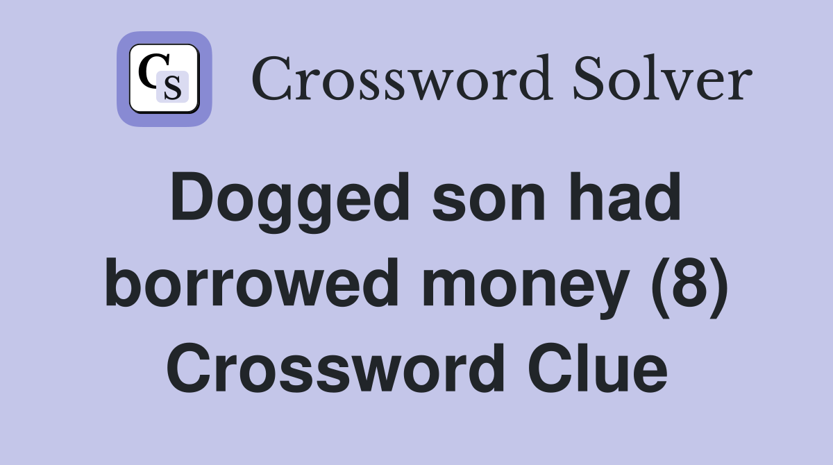 Dogged son had borrowed money (8) Crossword Clue Answers Crossword