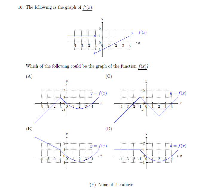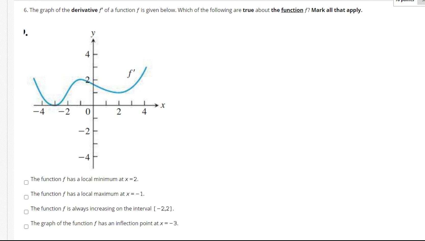 Solved 10 The following is the graph of f #39 (x) y = f #39 (x) Chegg com