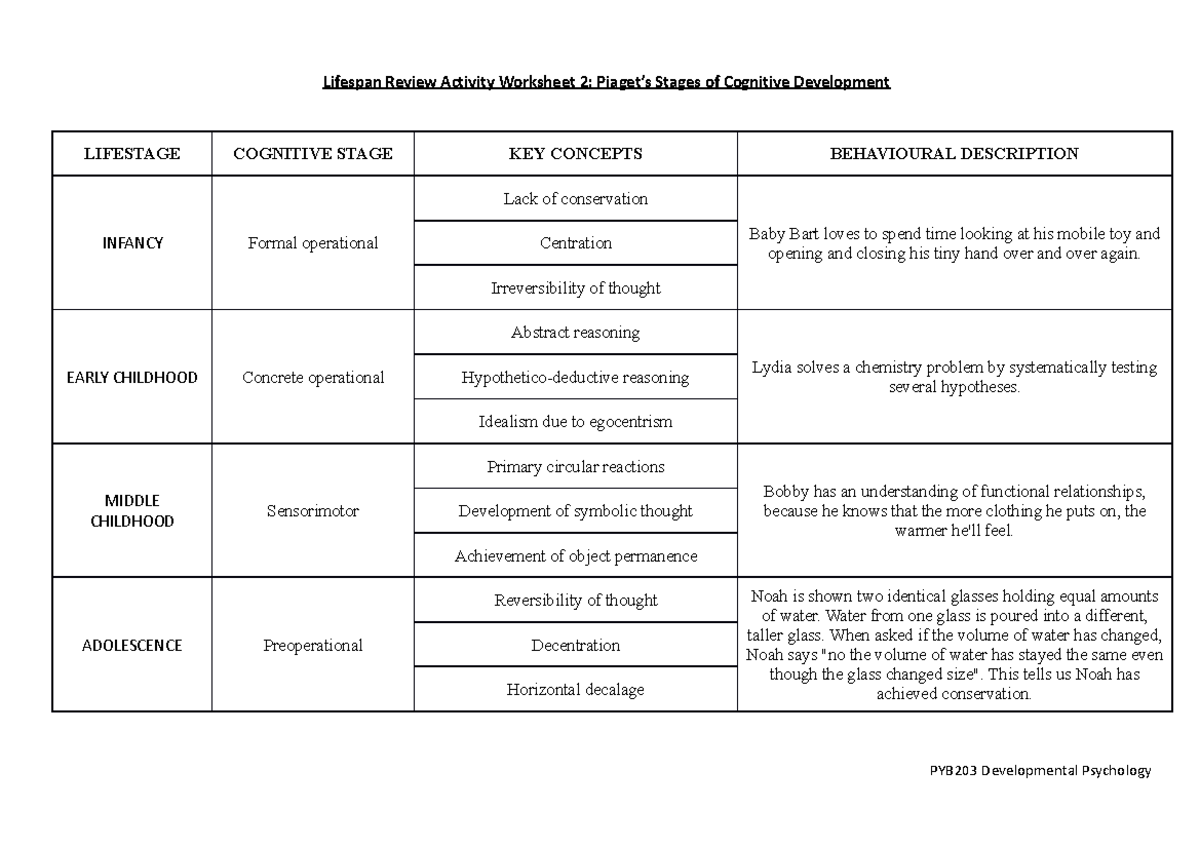 Piaget s Stages of Cognitive Development Worksheet Answers Psychology