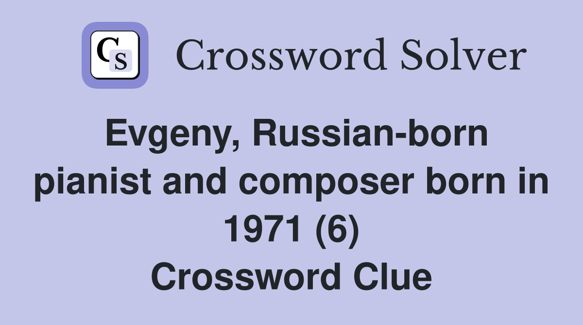 Evgeny Russian born pianist and composer born in 1971 (6) Crossword