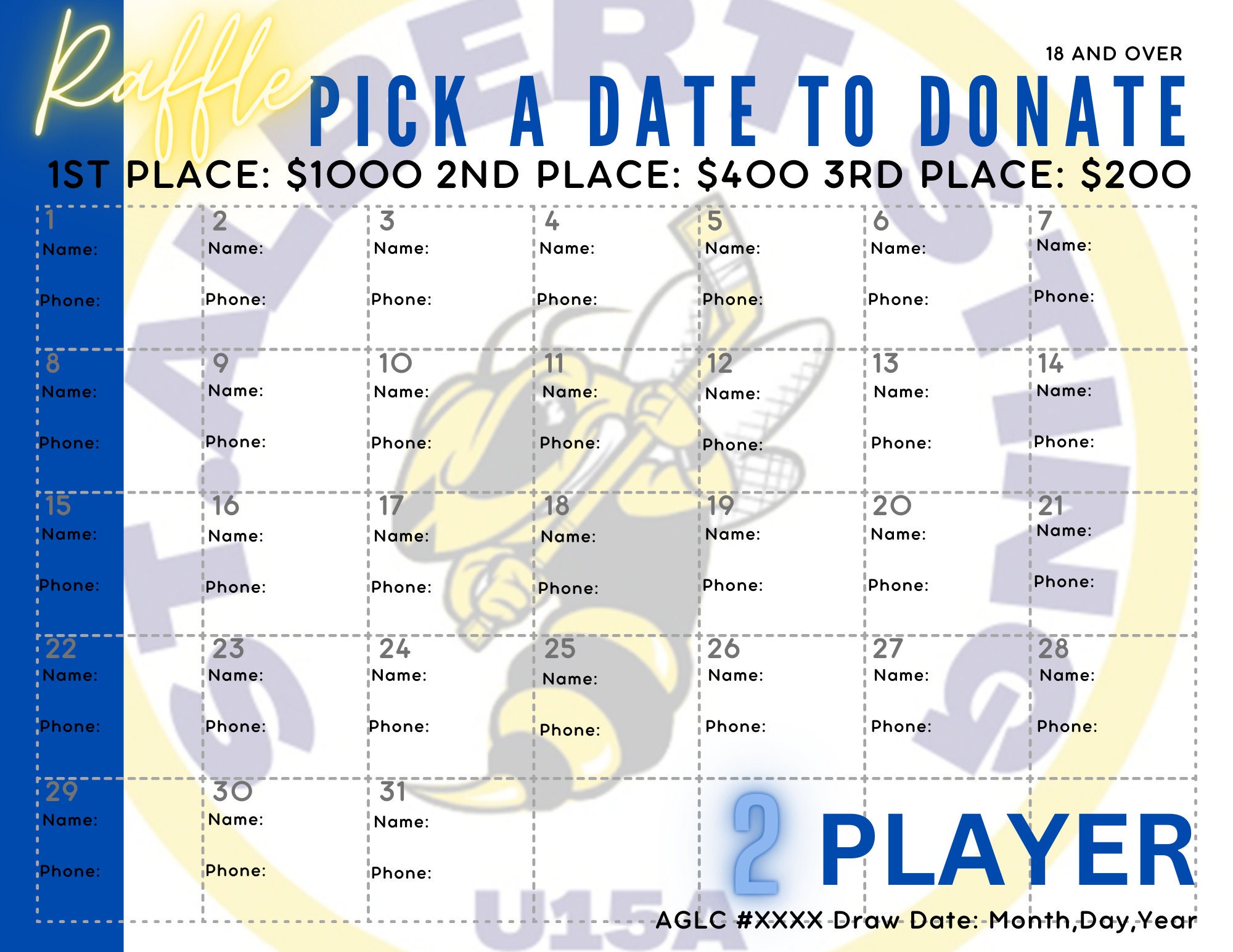 Pick a Date to Donate Calendar Team Fundraiser PRINTABLE Etsy
