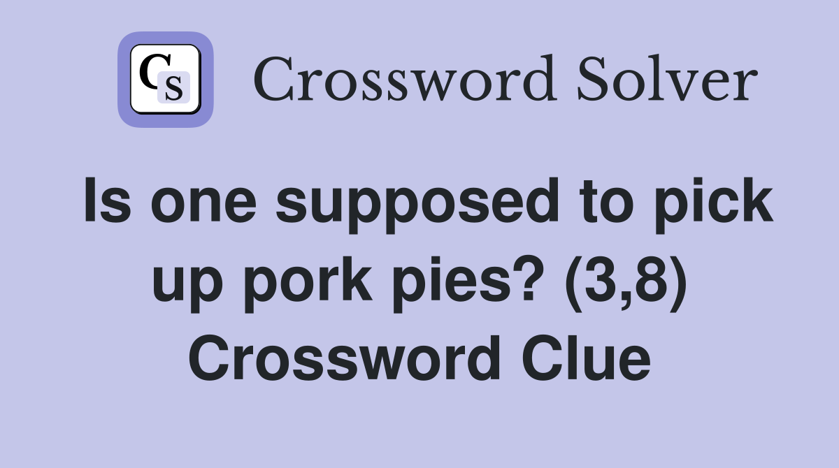 Is one supposed to pick up pork pies? (3 8) Crossword Clue Answers