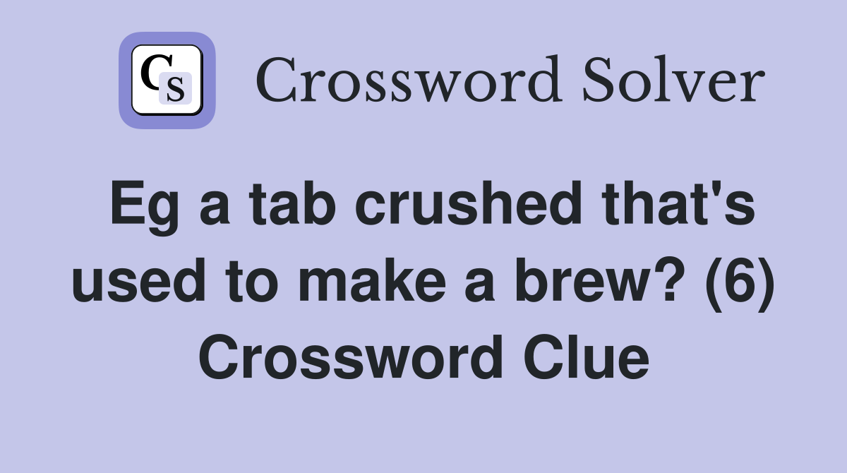 Eg a tab crushed that s used to make a brew? (6) Crossword Clue