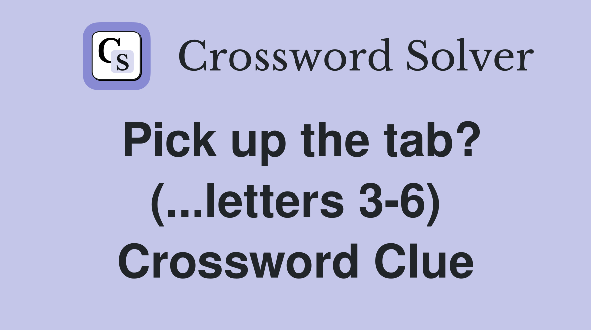 Pick up the tab? ( letters 3 6) Crossword Clue Answers Crossword