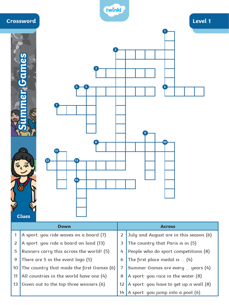 巴黎奥运会填字游戏paris Summer Games 2024 Crossword PDF