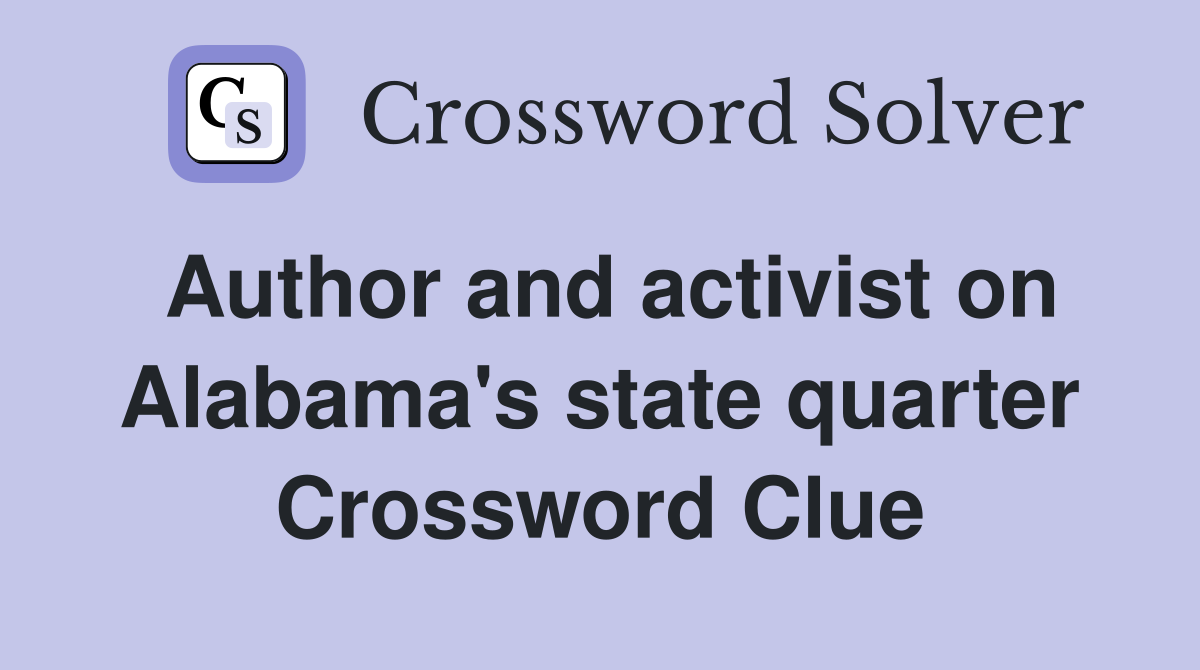 Author and activist on Alabama #39 s state quarter Crossword Clue Answers