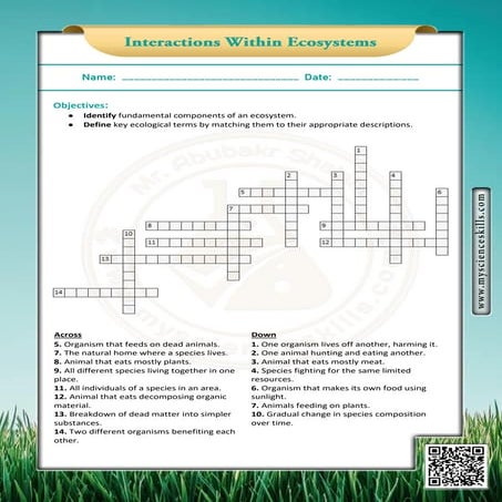 Interactions Within Ecosystems Crossword Activity Sheet Answer Key pdf