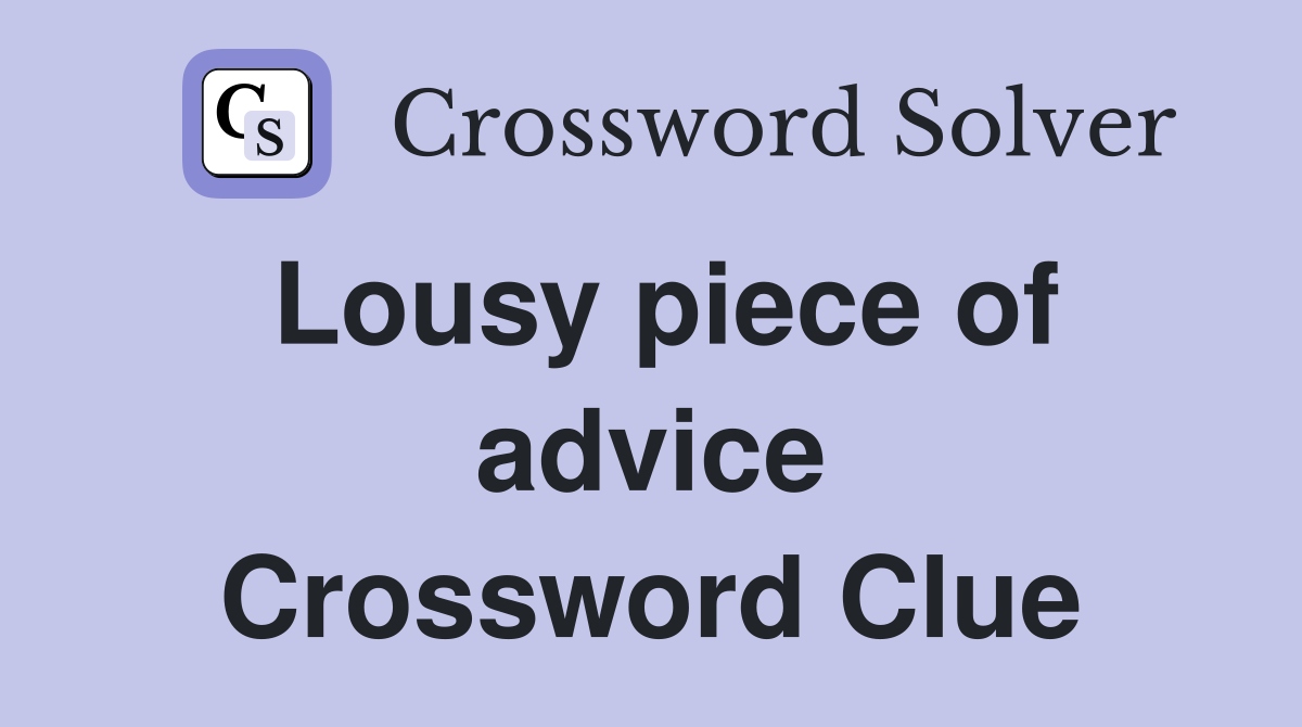 Lousy piece of advice Crossword Clue Answers Crossword Solver