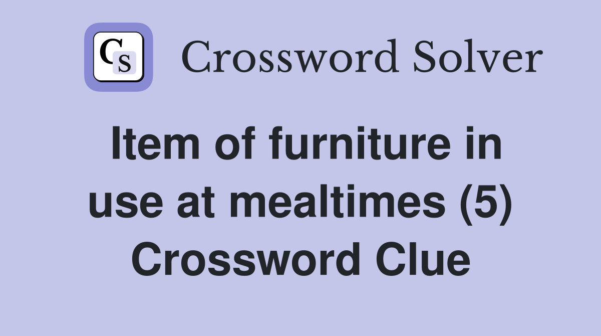 Item of furniture in use at mealtimes (5) Crossword Clue Answers