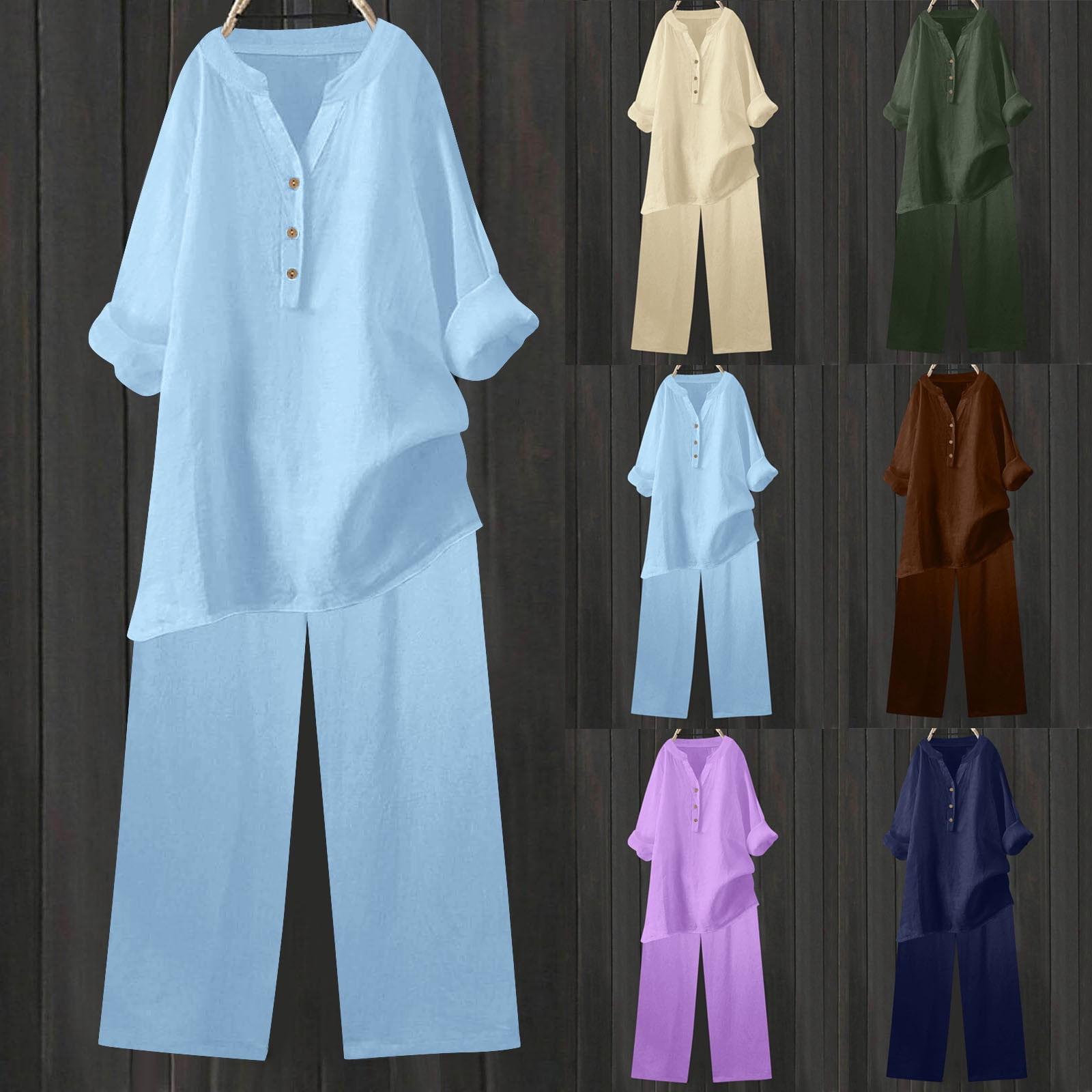 Simua Women #39 s Fashion 2 Piece Outfits Solid Color Loose Button Down