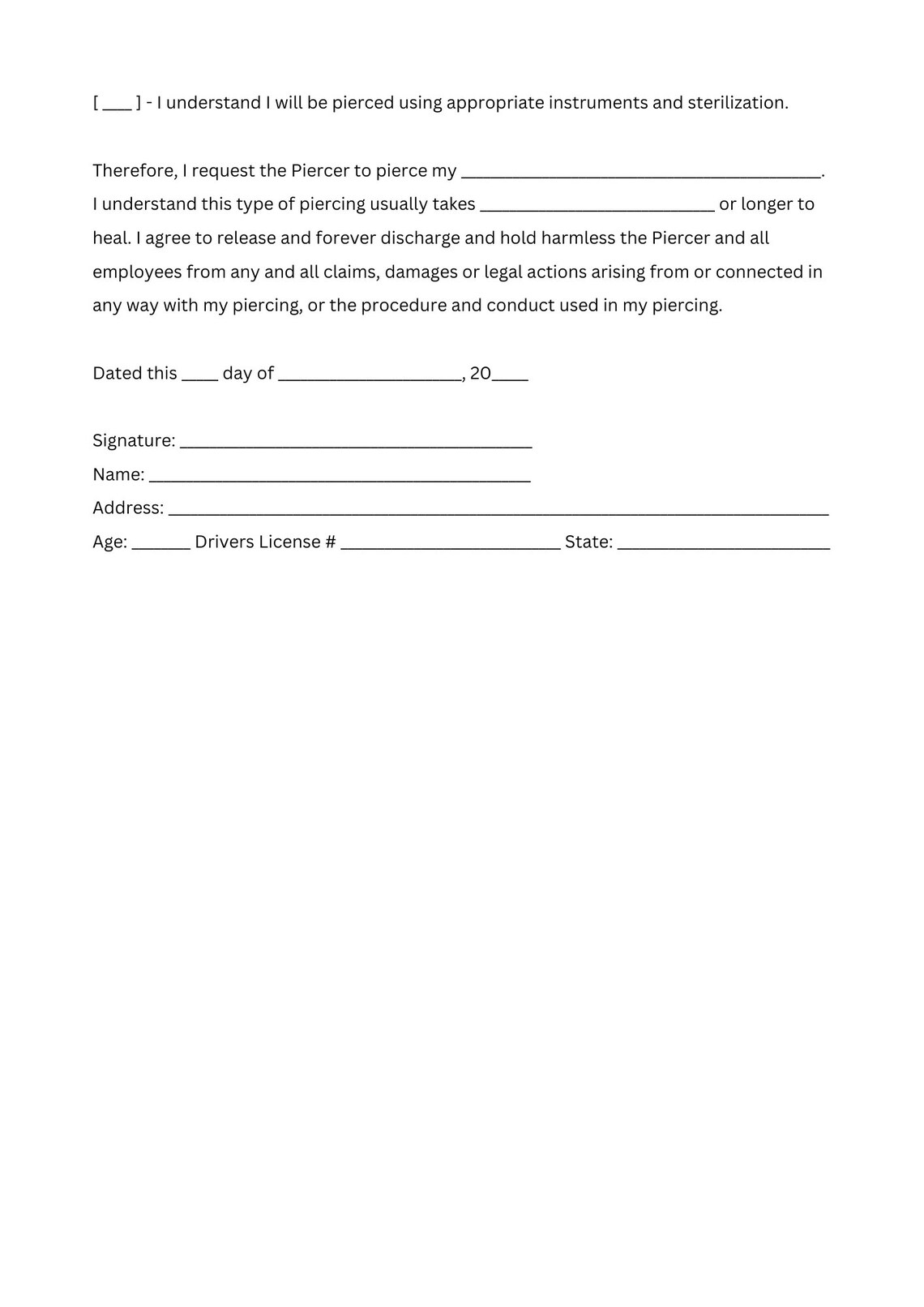Piercing Consent Form Template