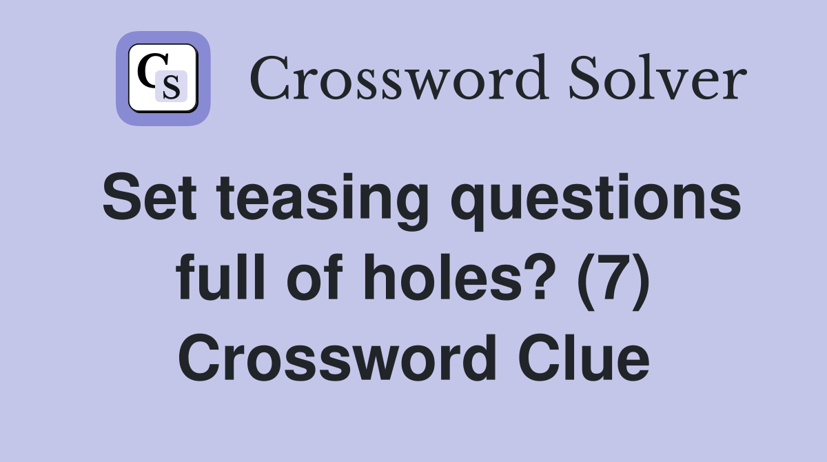 Set teasing questions full of holes? (7) Crossword Clue Answers