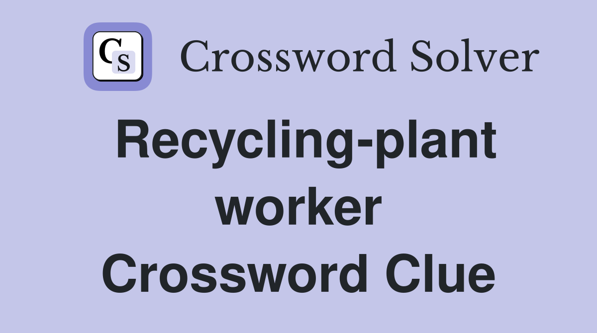 Recycling plant worker Crossword Clue Answers Crossword Solver