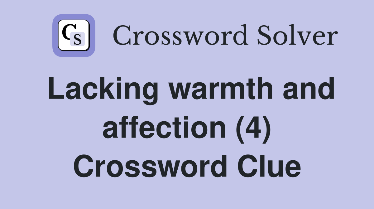 Lacking warmth and affection (4) Crossword Clue Answers Crossword