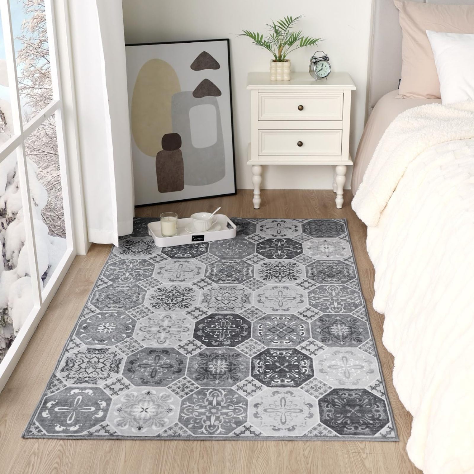 Bedroom Rug Washable Area Rug Stain Resistant Indoor Mat Non Slip Low