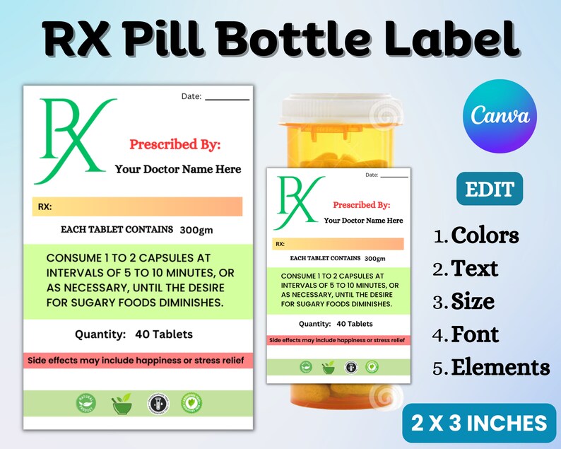 Editable Prescription Label Template: Custom RX Pill Bottle Label