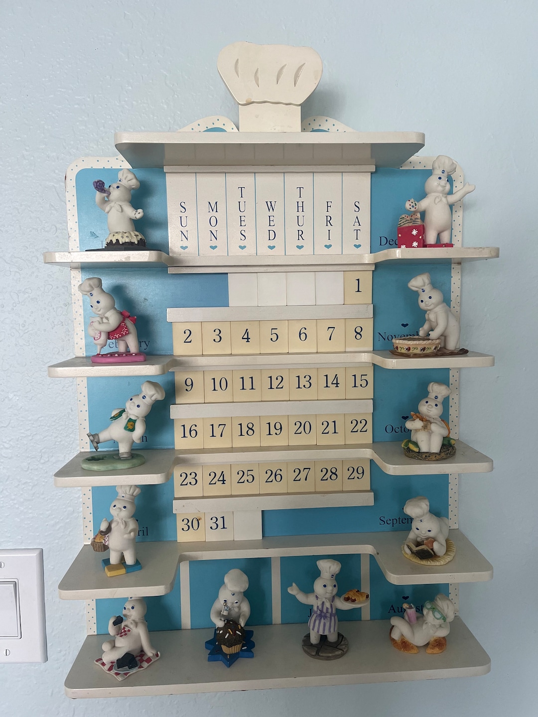 VTG 1997 The Pillsbury Doughboy Wooden Calendar Shelf The Danbury Mint