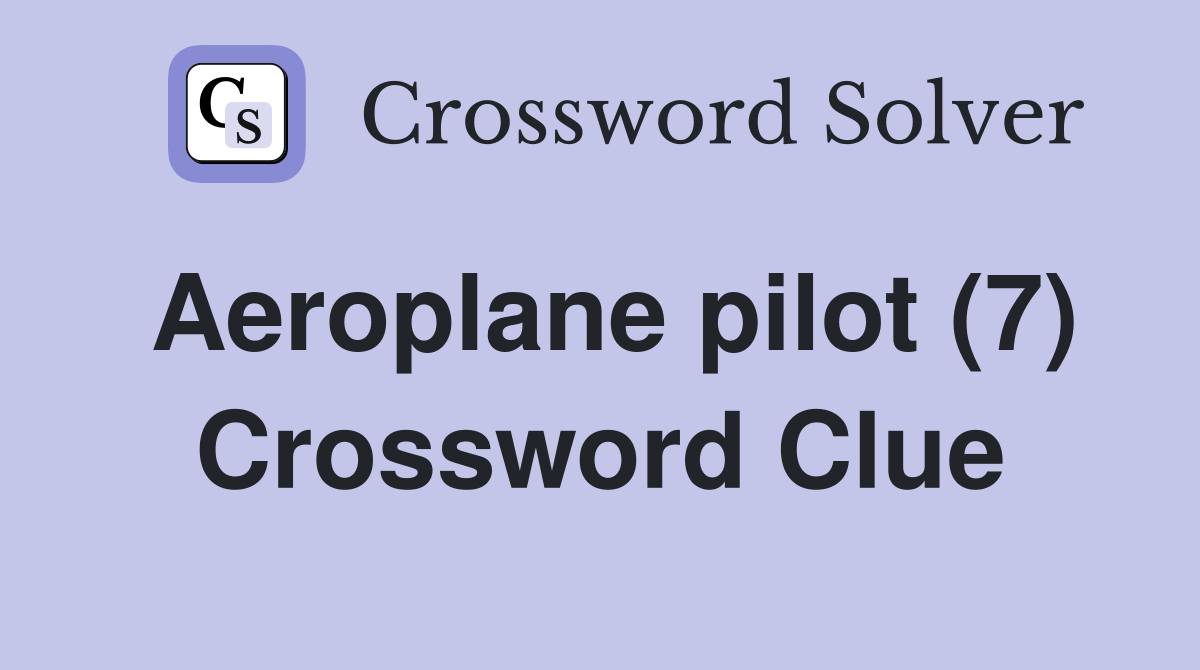 Aeroplane pilot (7) Crossword Clue Answers Crossword Solver