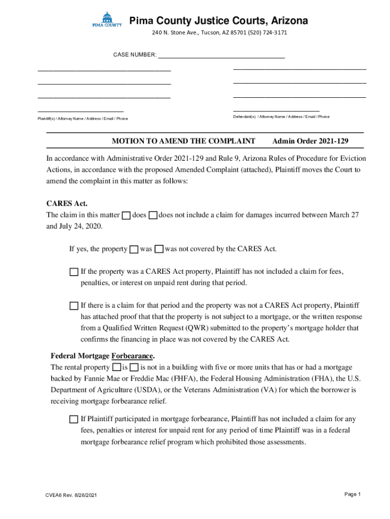 Fillable Online training jp pima govFormsCVEA6 Motion toPima County