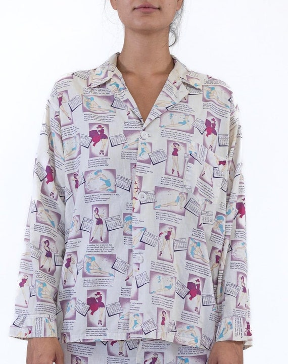1950S Reis Cotton Pin Up Girl Calendar Print Pajamas Gem